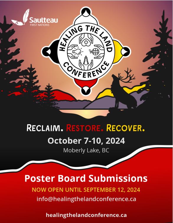 We are excited to announce a call for submissions for the Healing the Land Conference Poster Board Session, taking place from October 7-10, 2024, at the Saulteau First Nations Cultural and Recreation Centre.