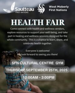 Saulteau First Nations and West Moberly First Nations invite you to join us for a Health Fair at the SFN Cultural Centre Gym.