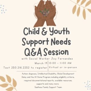 Autism Diagnosis, Intellectual Disability, Global Development Delay, and At Home Program including eligibility criteria, required documentation/reports, available resources, supports, and many more. Text 250-216-2252 to register - Brought to you by Saulteau Family Support Team