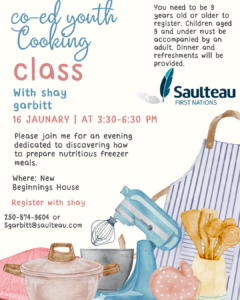 All events require prior registration with Shay (PH: 250-874-9604)!