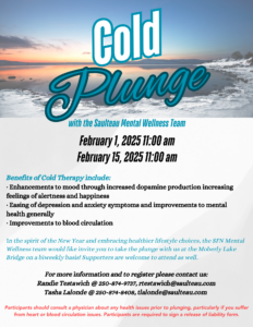 In the spirit of the New Year and embracing healthier lifestyle choices, the SFN Mental Wellness team would like invite you to take the plunge with us at the Moberly Lake Bridge on a biweekly basis! Supporters are welcome to attend as well.