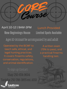 CORE Course - Happening April 10-12 from 9am - 3pm at the New Beginnings House. Registration is required! To do so please contact Tanisha at 250-788-3955 ext. 1033 or Shay at 250-874-9604