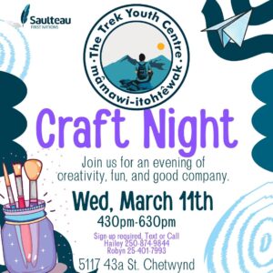 Looking for a creative way to spend your evening? Join us for Craft Night at the Trek Youth Centre!