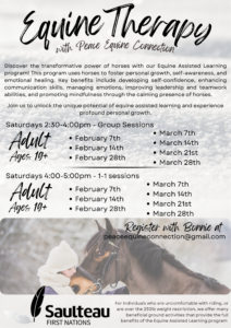 Our Health Centre Team is happy to be brining back Equine Therapy with Peace Equine Connection in February and March 2026!