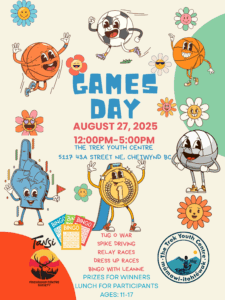 Please join us at the Trek Youth Centre this Wednesday (Aug 27/2025) for a Games Day!