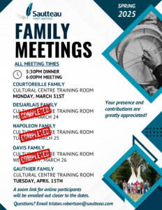 The Gauthier Family Meeting has been postponed to April 15th