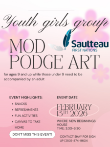Join us for a Girls Youth Creative Class! Hosted at the New Beginnings House