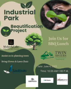 Please join us on June 4th at 10 am, for the Industrial Park beautification project and the planting of 70 trees. Twin Sisters Native Plant Nursery will be guiding the group in a “How to Plant & Healthy Plant Presentation”. The Moberly Lake and Muskoti Elementary Schools will also be participating, in addition to 4EG, PRRD and possibly West Fraser. Various departments have graciously provided supplies, equipment & manpower, as well as various companies providing in kind services. (MLST, Mistahiya Contracting, 4EG, Twin Sisters Native plant Nursery) Dark Ties media will also be present to capture the event 😊 Hope to see you there!