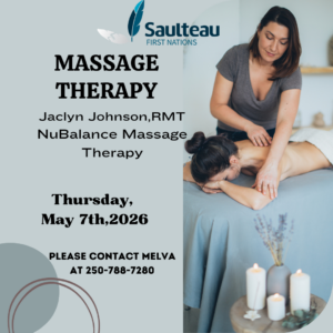 Massage Therapy with Jaclyn Johnson, RMT from NuBalance Massage Therapy will be available on Thursday, May 7th, 2026.