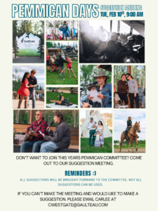 Join us for the Pemmican Days suggestion meeting on February 10, 2026 @ 9:00am at the Cultural Centre.