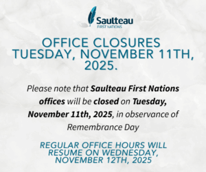 Please note that Saulteau First Nations offices will be closed on Tuesday, November 11, 2025, in observance of Remembrance Day.