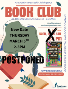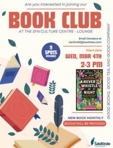 Books will be provided, email Candace (cschmidt@saulteau.com) for more info!