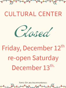 Culture Centre will resume normal operating hours for Saturday - Dec 13 2025