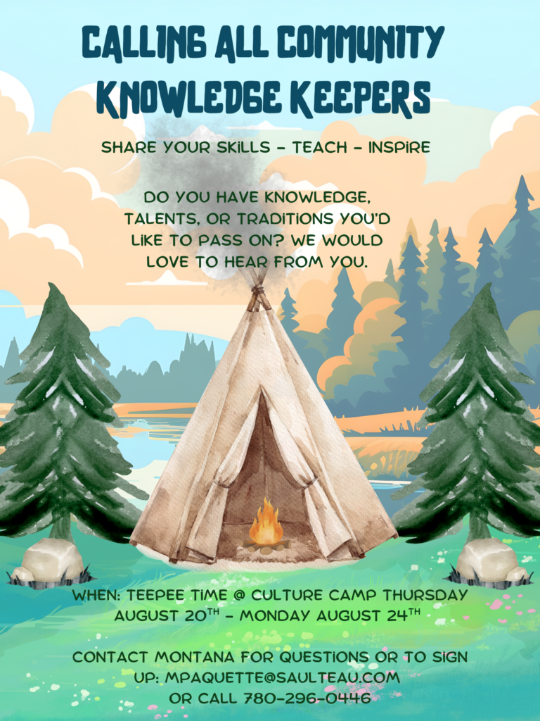 Join us at Teepee time at Cultural Camp Thursday August 20th - Monday August 24th!