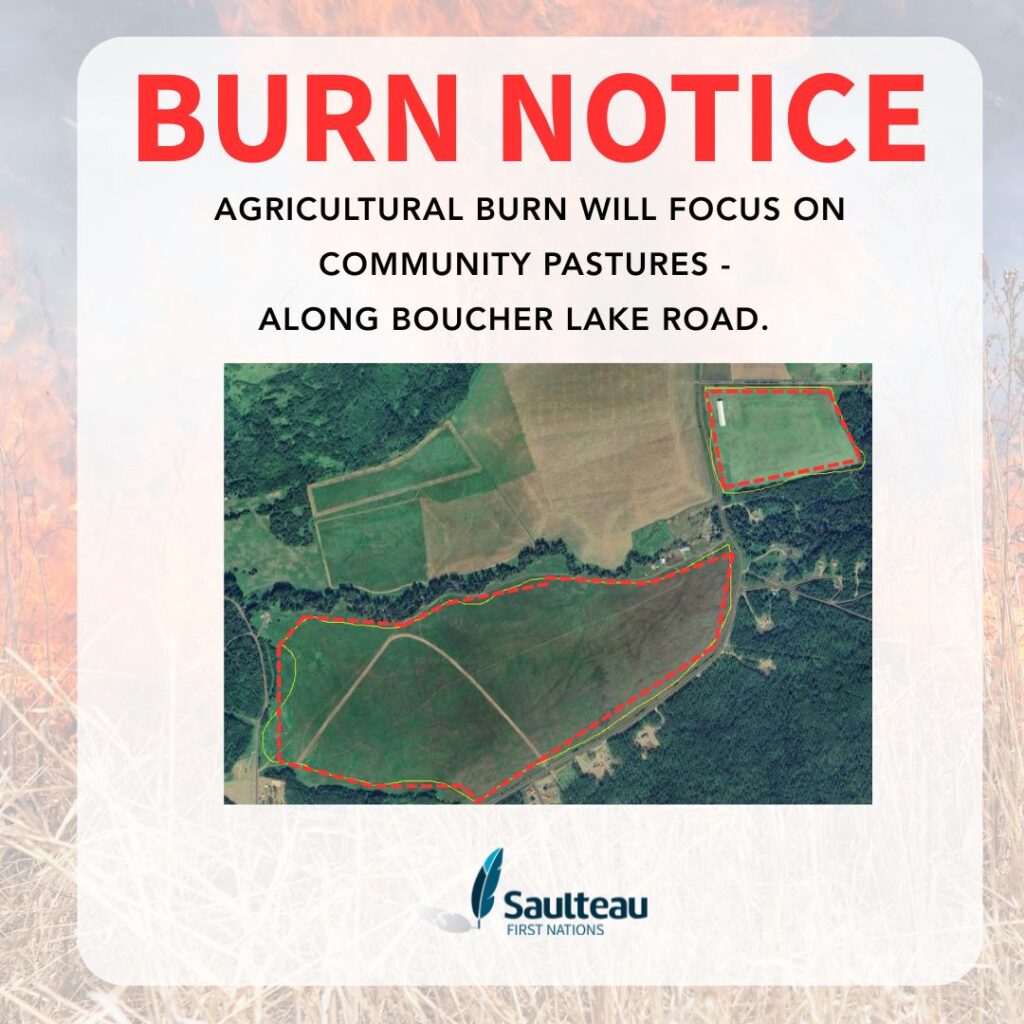 Saulteau First Nations is implementing an agricultural burn with the assistance of BC Wildfire – if you live on reserve or within the area of Moberly Lake, you may see smoke within the area over the weekend. Burning is being performed in the community pasture along Boucher Lake Road, across from Onion Hill Subdivision. If you have any questions, concerns, or would like to be a part of the activities – please give Aislinn Gentles a call (or text) 250-401-7667!
