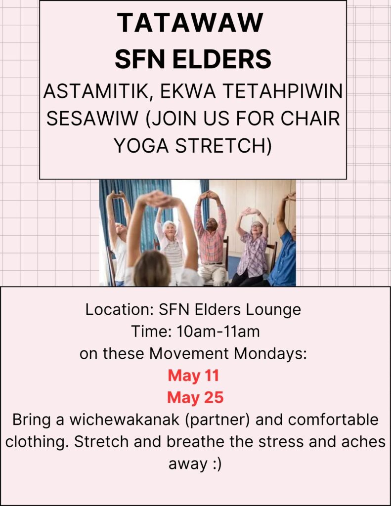 Join us for chair yoga stretch at the SFN Elders Lounge!