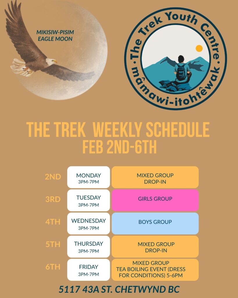 The Trek Youth Centers Weekly Schedule February 2nd to February 6th