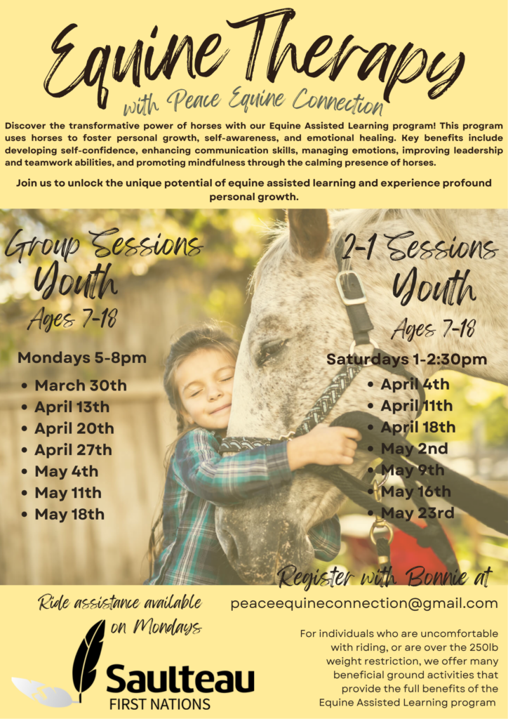 This youth program (ages 7–18) offers a unique opportunity to build confidence, improve communication, and support emotional well-being through guided interactions with horses. Sessions are offered in both group settings and 2–1 sessions in a calm and supportive environment.